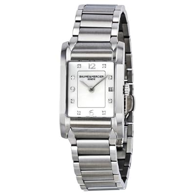 Movimento al quarzo. Diametro cassa: 22 mm. Orologio casual. Vetro zaffiro. Impermeabile fino a 50 m (165 piedi).Cassa e bracciale in acciaio. Risolto lunetta in acciaio inox. Quadrante in madreperla con argento tono mani e indici di diamanti. Numeri arabi segnano le 6, 9 e 12 posizioni. Comporre Tipo: Analogico. Visualizzazione della data nella posizione ore 3. Movimento al quarzo. Vetro zaffiro antigraffio. Tirare / spingere la corona. Fondello solido. Dimensioni cassa: 22 mm x 35 mm. Spessore della cassa: 9 mm. Forma della cassa rettangolare. Chiusura distribuzione con pulsanti di sicurezza. Impermeabile fino a 50 metri / 165 piedi. Funzioni: data, ora, minuto, secondo. Casual stile orologio. Guarda etichetta: Swiss Made. Baume e Mercier Hampton Madre di Pearl Diamond Dial acciaio inossidabile Ladies Watch M0A10050.